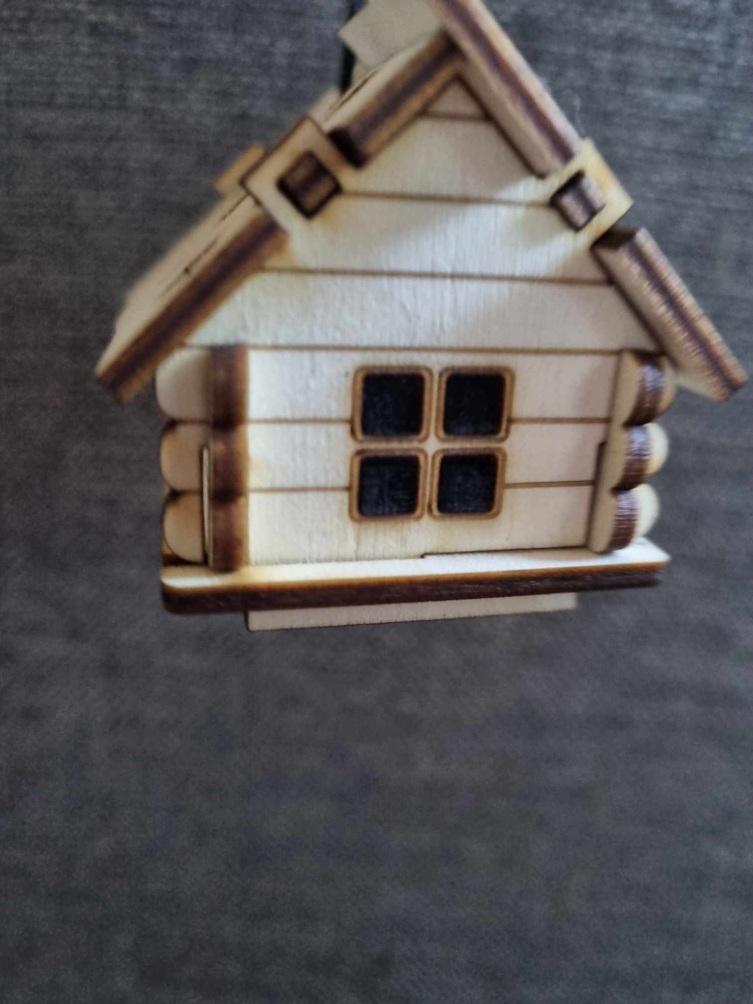 Julehuset er ca. 6 x 6 x 6 cm, og kan f.eks bruges som ophæng på juletræet eller troldegrene